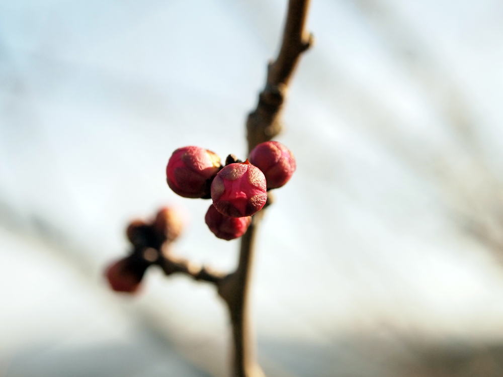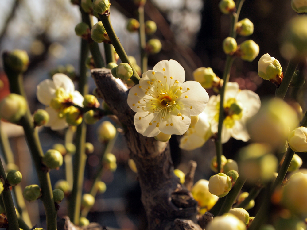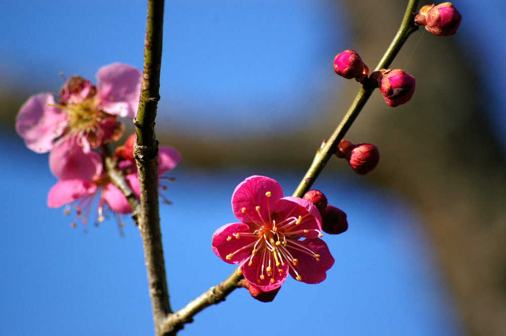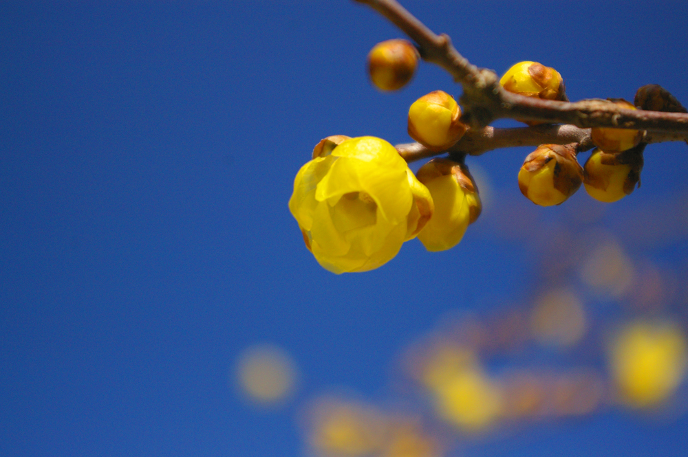 青い空にとっても映える黄色い梅。蠟梅(ろうばい)という種類らしい。