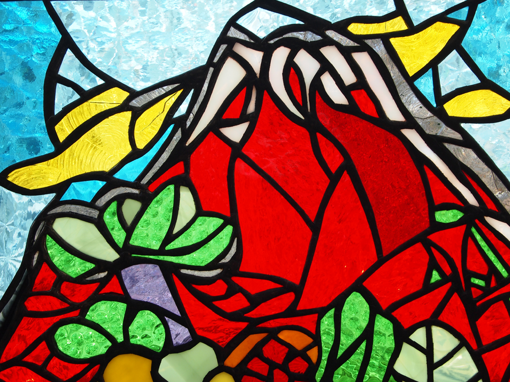 太陽の光を通した色硝子は小さな虹のようだ。