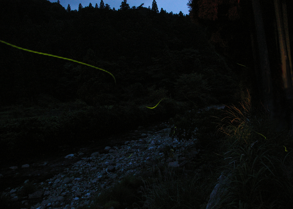 できるだけ光の少ない場所で蛍がたくさんいるスポットを探したり、蛍見物のギャラリーをどう避けるかなど、テクニック以外の要素も必要とするからだ。