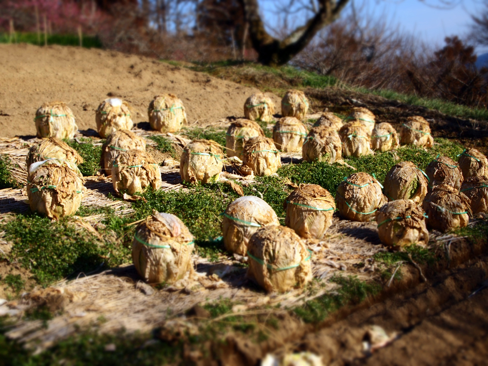 白菜たちがハチマキをして今にも動き出しそうで、おじさんに見えてきた。